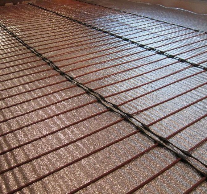 Le processus d'installation du système de tige est effectué dans une chape. En tant que substrat calorifuge, des matériaux avec un revêtement métallisé doivent être utilisés, ce qui ne craint pas l'impact négatif des éléments qui composent la chape. Les revêtements avec une feuille dans la couche de mortier se dégradent très rapidement, c'est pourquoi ils ne conviennent pas aux sols en carbone.