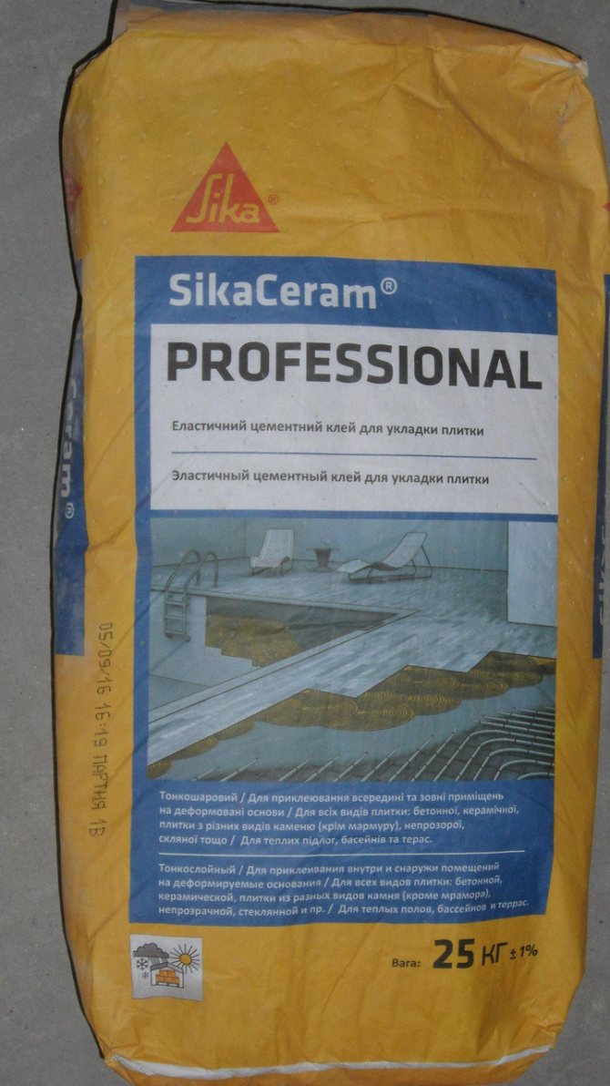 Adhésif à base de ciment Portland avec additifs complexes. Revêtement intérieur des murs et des sols avec des carreaux de céramique. Convient pour les salles de bain. Il va bien avec les carreaux avec n'importe quel niveau d'absorption d'eau.