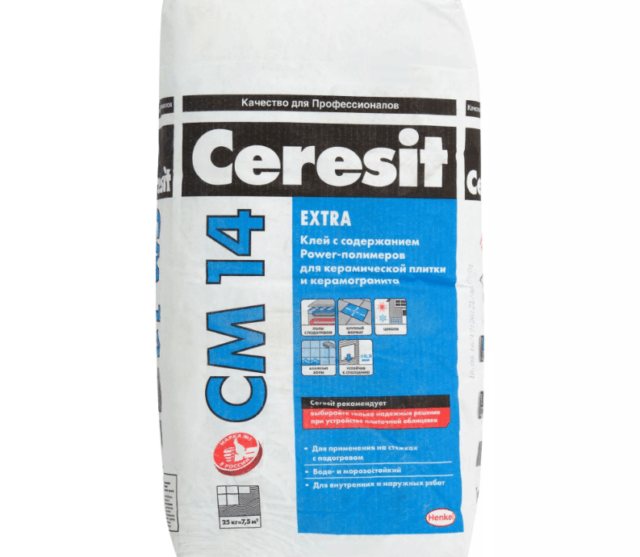 - Ceresit SM-14 Extra. Il est utilisé pour la pose de grès cérame sur un sol chaud. Résistant à une humidité accrue. Fournit une adhérence au béton, aux surfaces de ciment et à l'imperméabilisation. Les travaux sont réalisés à l'intérieur, à l'extérieur.