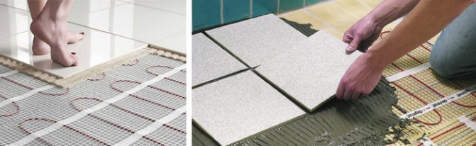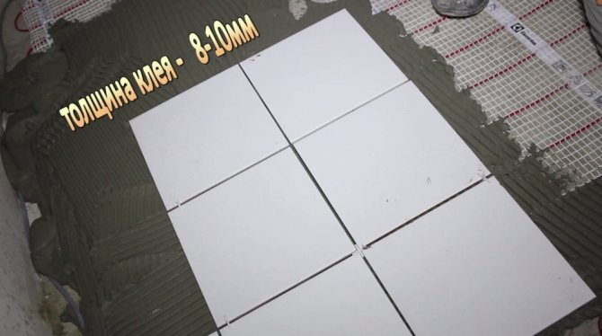 - Si les carreaux sont posés sur des nattes du système thermique, la composition de la matière première adhésive doit être prise en compte, car les composants chimiques de la solution peuvent détruire le treillis. Par conséquent, un revêtement protecteur préliminaire est appliqué.