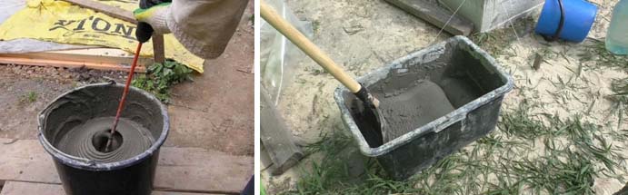 - Diluer la colle à carrelage et l'appliquer sur une petite zone de la chaussée en béton.