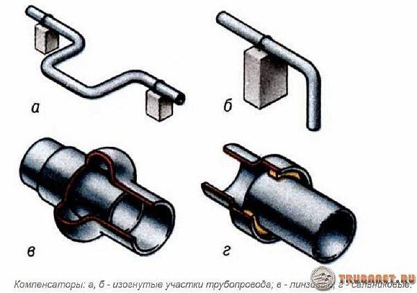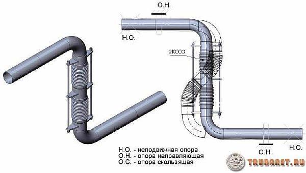 S'il y a une possibilité, et parfois cela doit simplement être fait, alors différents types de compensation sont appliqués dans les limites du système ou de l'appareil de pipeline. Dans les installations avec une température relativement basse et de petites sections de conduites, il est parfois préférable de ne pas appliquer de compensation dans une partie du système de canalisations, au lieu d'utiliser leur flexibilité naturelle. L'emplacement des supports dépend du type de compensation à approuver.
