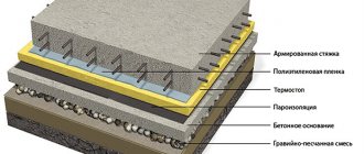 Lors des travaux d'isolation, des bûches de bois sont utilisées pour le sol ou une chape en béton est réalisée. La première option est préférable, de notre point de vue, car la chape sera beaucoup plus lourde. Si vous prenez en même temps en compte la masse du profilé métallique, tous ensemble peuvent créer une charge importante sur le sol. Le sol et le plafond sont isolés en deux couches, car ce sont des surfaces froides.