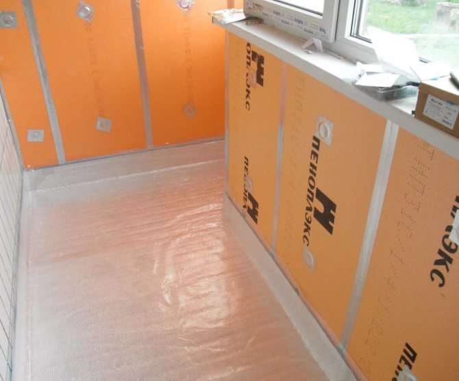 Vous devez maintenant porter une attention particulière à l'imperméabilisation. Après tout, c'est l'une des composantes de tout succès. L'importance de cette étape est qu'aucune précipitation et humidité ne doivent pénétrer dans la pièce, que ce soit par les fentes de la loggia ou par la plaque supérieure, car cela peut ensuite conduire à l'imbibition de l'isolant. Par conséquent, il est nécessaire d'effectuer une étanchéité complète afin que l'isolation ne devienne pas inutilisable à l'avance.