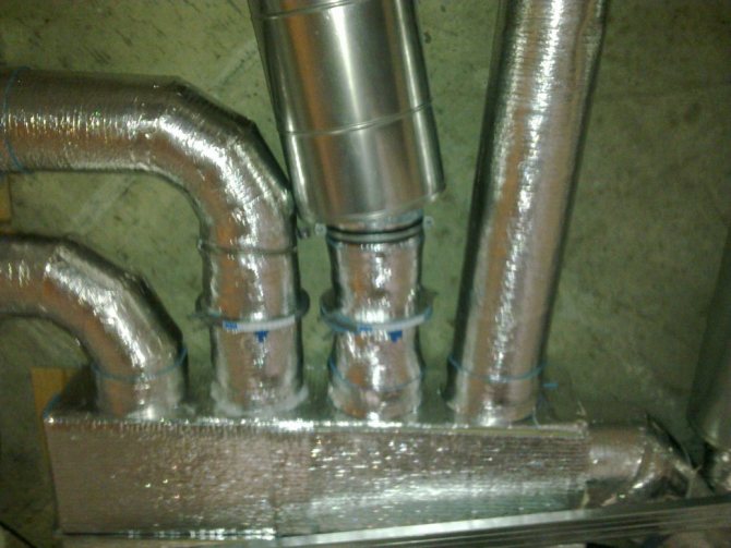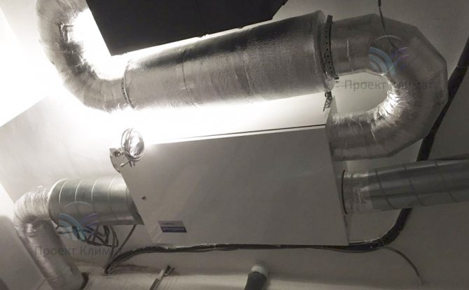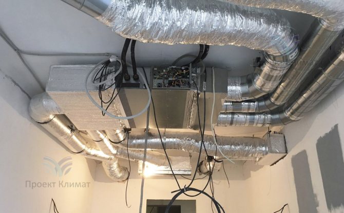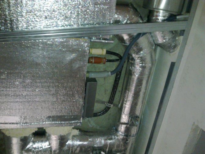Il est à noter que dans ce cas, des conduits d'air d'une section beaucoup plus grande sont nécessaires que dans le premier cas. Le système de ventilation fournit environ 100 à 200 mètres cubes d'air frais par heure à un petit salon. Et le système de climatisation, pour avoir le temps d'évacuer les entrées de chaleur, doit avoir une consommation d'air deux à trois fois supérieure. Il est également important de savoir que le conduit d'air «froid», qui fournit de l'air refroidi de l'unité de conduit aux grilles d'alimentation, doit être isolé. Ce besoin est causé par l'inévitable condensation sur les conduits d'air froid sans isolation thermique. La condensation peut dans certains cas s'accumuler en grandes quantités, entraînant des taches sur les plafonds suspendus et de la rouille sur les conduits d'air.
