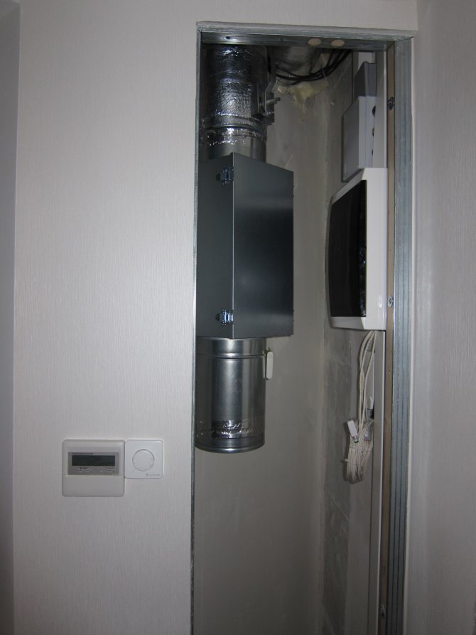 De plus, le climatiseur central (ou centrale de traitement d'air avec refroidisseur) peut être équipé d'un récupérateur (échangeur de chaleur). Le récupérateur est un dispositif dans lequel, pendant la saison froide, l'air d'alimentation est chauffé par la chaleur du flux d'échappement. Dans ce cas, les flux ne sont pas mixtes (l'exception est un récupérateur rotatif, mais il n'est pratiquement pas utilisé dans les chalets). Pendant les saisons chaudes, l'air soufflé est refroidi en transférant la chaleur vers l'air extrait frais et conditionné. Le récupérateur est un appareil extrêmement économe en énergie et permet d'importantes économies d'énergie, tant pour le chauffage que pour la climatisation.
