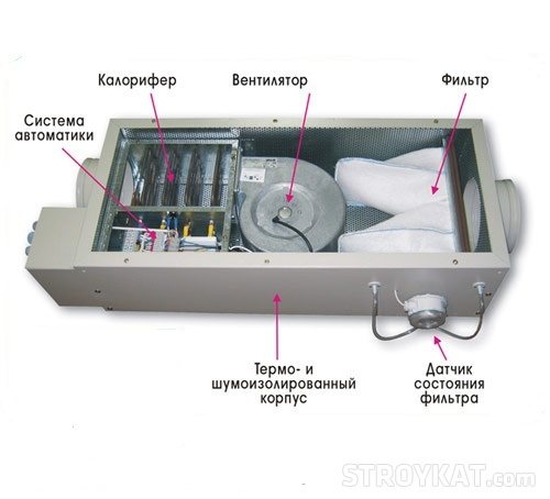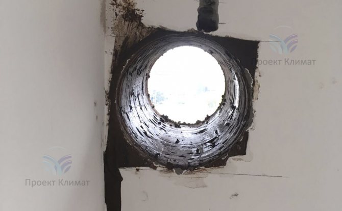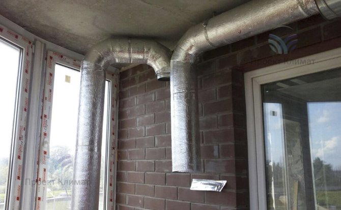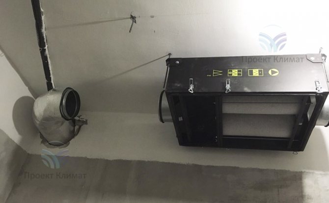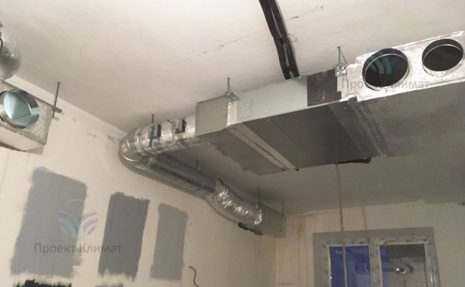 L'air d'alimentation, avant d'entrer dans la pièce, est mélangé à l'air de recirculation, traité, atteignant la température requise et acheminé vers les grilles d'alimentation. L'air d'échappement est aspiré par les grilles d'échappement. Une partie entre dans le système d'échappement et est rejetée, et l'autre, la plus grande partie, retourne dans le climatiseur par le conduit d'air recyclé. Parfois, la prise d'air d'échappement est organisée à partir du couloir ou de la salle de bain. Dans ce cas, il est nécessaire de s'assurer qu'aucun bruit ou sifflement n'est généré lorsque les portes sont fermées en raison de la contre-pression de l'air d'alimentation.