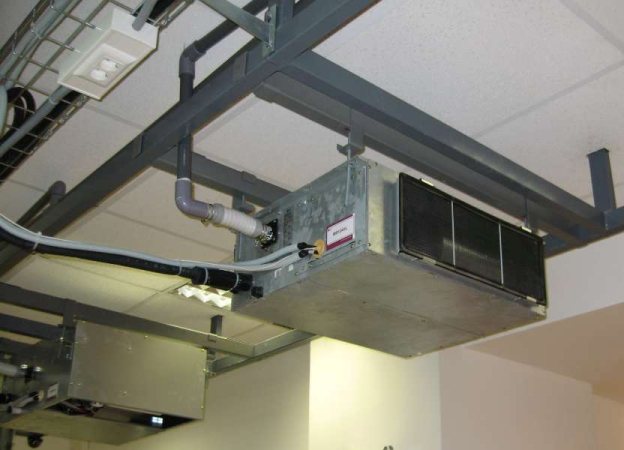 Le système de division de canaux utilise les circuits d'alimentation de la manière la plus compétente. Ce climatiseur prend-il l'air de la rue? Une unité distante est située à l'extérieur du circuit, les évaporateurs y sont reliés par des tuyauteries, montés dans un faux plafond ou un faux mur. Une unité de préparation d'air extérieur est utilisée, qui est fournie au système à plusieurs endroits. La condition est qu'il y ait suffisamment d'espace derrière un mur ou sous un plafond pour accueillir l'équipement. Le système est programmable, la régulation est effectuée par une unité électronique. L'unité de préparation du flux d'air de la rue et le climatiseur gainable ont des panneaux de commande différents. L'ajout d'air frais peut être de 30%. À la suite du renouvellement, l'équilibre de la teneur en dioxyde de carbone et en oxygène change.