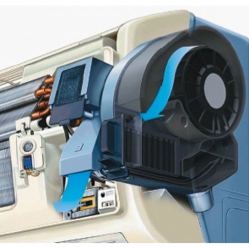 Le dispositif du système de canaux est à deux modules. Une unité de compresseur-condensation est située à l'extérieur du périmètre, l'unité d'évaporation est située à l'intérieur des locaux. Ils sont reliés les uns aux autres par des tubes en cuivre avec du fréon et un câblage électrique. L'unité d'évaporation peut être cachée dans le revêtement de la pièce. Les climatiseurs avec la fonction d'afflux d'air frais de la rue produisent un échange d'air dans la pièce pendant 2-3 heures. Physiologiquement, l'air devient sain, oxygéné. Ces climatiseurs comprennent des systèmes de Daikin «Ururu Sarara». Hitachi et Haier ont créé leurs modèles avec de l'air frais.