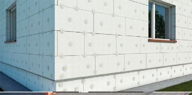 Ensuite, l'isolation est "chevillée", c'est-à-dire installation de fixations spéciales pour augmenter la rigidité de la fixation des plaques aux structures porteuses du bâtiment.