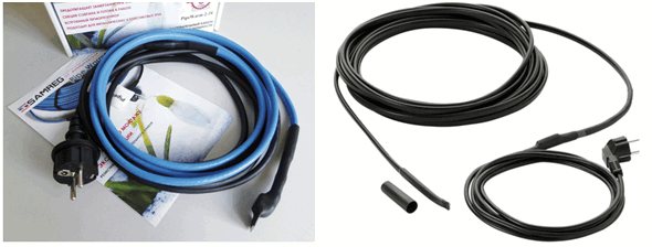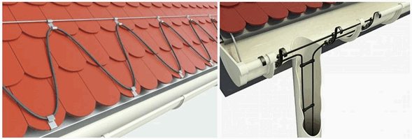 Important! Il ne faut pas oublier que l'utilisation d'appareils de chauffage résistifs pour l'installation du système de givrage n'est pas pratique, car ils sont sensibles au chevauchement du câble ou du ruban, lorsqu'un tour est placé sur l'autre, et à l'accumulation de feuillage dessus - en ces endroits le système brûle rapidement.