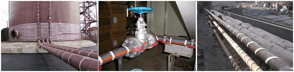 L'utilisation des rubans chauffants dans l'industrie n'est pas moins répandue; ils sont utilisés pour chauffer des réservoirs avec des liquides non combustibles, des pipelines de processus et principaux, des équipements de canalisation et de pompage, des vannes, etc. La liste des moyens techniques qui nécessitent un préchauffage technologique ou pendant le fonctionnement est très longue.