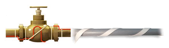 Dans ce cas, la méthode de placement du ruban ou du câble vous permet de varier en fonction du degré de chauffage et de la consommation de matière. Si l'objectif est de protéger le système d'alimentation en eau contre le dégivrage, le ruban peut alors être appliqué de manière linéaire le long du tuyau. Si vous prévoyez d'obtenir de l'eau à température ambiante à la sortie, vous pouvez isoler le tuyau en plaçant la bande chauffante avec un serpent, ou équiper le système d'alimentation en eau sur la disposition linéaire du ruban d'une couche de matériau isolant thermique.