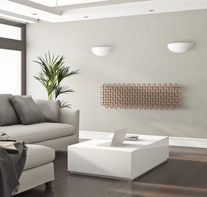 Les radiateurs tubulaires sont constitués de tuyaux horizontaux ou verticaux reliés par des collecteurs. La conception de ce type de batterie répartit uniformément la chaleur, élimine les fuites, simplifie le nettoyage et réduit le risque de blessure. Entre les mains des designers, les tubes flexibles se transforment en objets d'intérieur originaux, dans lesquels il est difficile de reconnaître les appareils de chauffage.