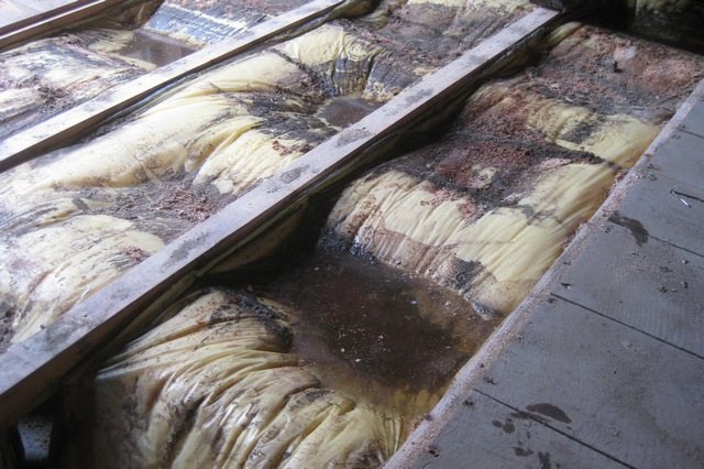 - Les joints du film n'étaient pas collés En conséquence, le condensat pénètre dans les fibres de la laine minérale.
