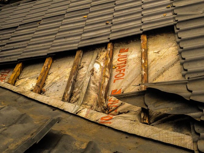 - Lors de l'installation, le matériau d'étanchéité entre le toit et l'isolant a été endommagé. Il s'agit généralement d'un film ou d'une membrane de superdiffusion. Les ouvriers l'ont peut-être perforé lors de l'assemblage du toit. Cela se produit souvent lorsque l'imperméabilisation est fixée par sur-étirement, ce qui est une erreur. L'installation doit être effectuée de manière à ce que l'imperméabilisation s'affaisse un peu et ne crée pas de contraintes excessives sur le matériau. De plus, l'humidité provenant d'une éventuelle condensation peut s'accumuler et s'écouler aux endroits où le film s'affaisse.