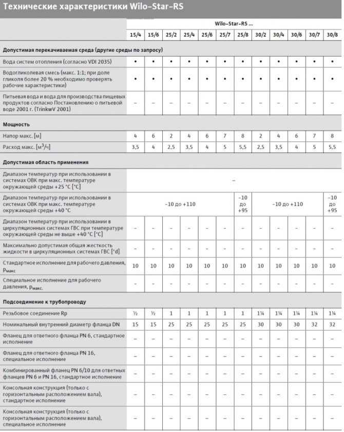 Un environnement de travail confortable pour un tel dispositif est l'eau ou une composition eau-glycol. Les pompes Star-RS pour les systèmes de chauffage forcé sont pratiquement silencieuses. Ils pompent rapidement le liquide de refroidissement et consomment peu d'électricité.