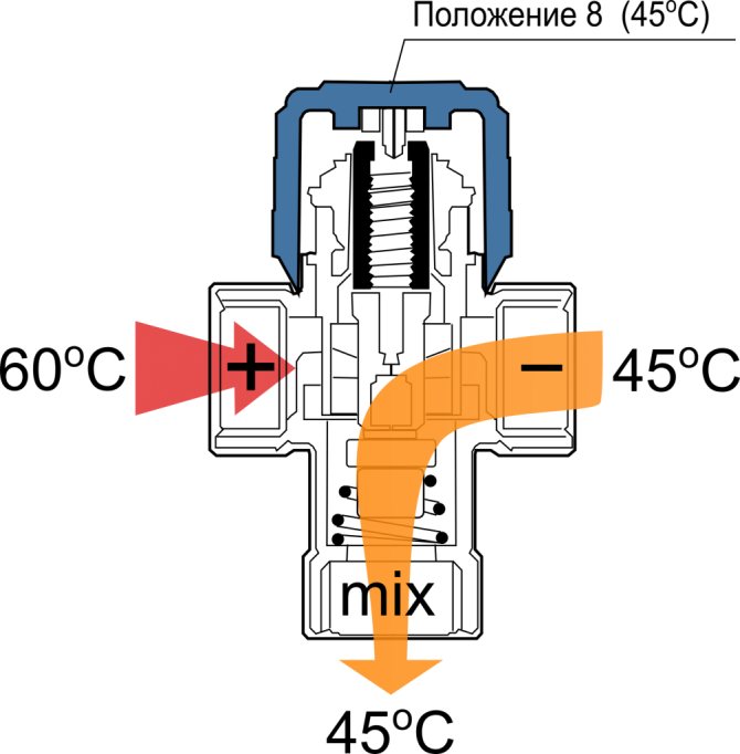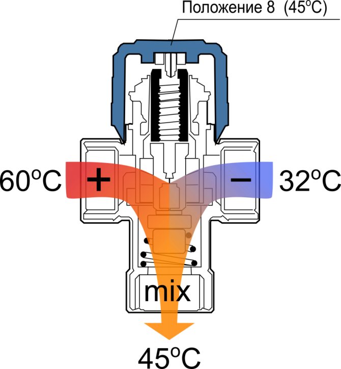 - Sécurité. Les gens oublient souvent à quel point la température de l'élément chauffant est élevée, ce qui entraîne de graves brûlures. L'utilisation d'un thermo-mélangeur spécial vous permet d'éviter de telles situations et de vous protéger du danger.