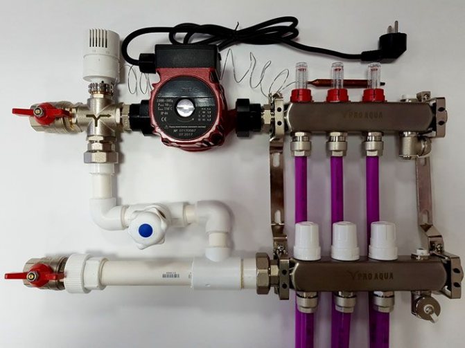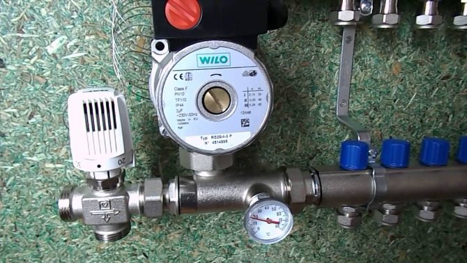 Le pipeline est équipé d'une petite pompe, par laquelle la circulation forcée de la source de chaleur le long du circuit est effectuée. Ces appareils ont des vannes d'alimentation à deux ou trois temps. Ils sont nécessaires pour obtenir un apport constant de liquide froid de la circulation au liquide de refroidissement.