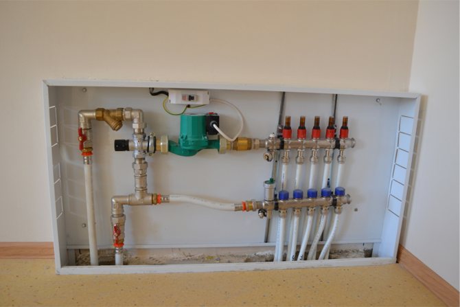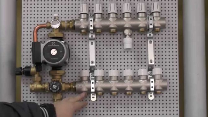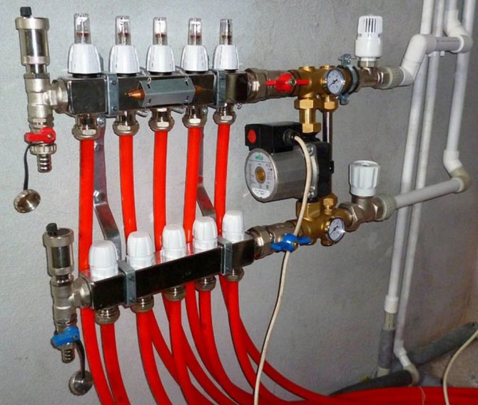 - Les vannes et le collecteur pour le chauffage par le sol sont connectés, après quoi la préparation de l'installation du circuit est effectuée.