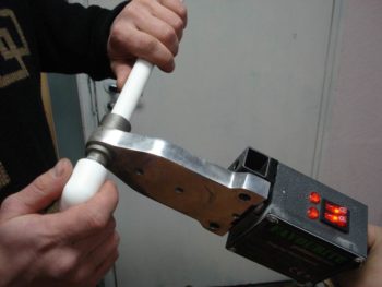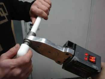 Le processus de soudure n'est pas difficile pour les bricoleurs. Le dispositif de raccordement des tuyaux est représenté par un fer à souder avec des buses marquées de différents diamètres. Avant le brasage industriel, il est suggéré d'effectuer un essai de connexion thermique des matériaux sur de petits morceaux de tuyaux et des éléments de connexion non utilisés. En utilisant des connecteurs combinés, il est possible au stade de la conception d'assurer une pression appropriée dans toutes les parties de la structure de chauffage, tout en évitant des coûts inutiles pour l'utilisation de tuyaux d'un diamètre plus grand que nécessaire.