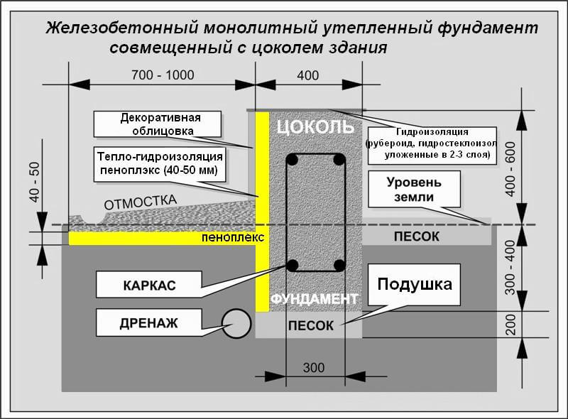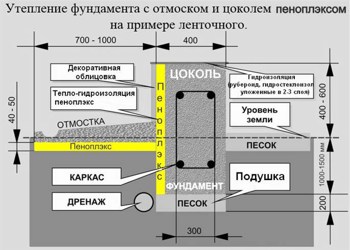 Pour éviter les grandes pertes de chaleur et la pénétration d'humidité à l'intérieur, il est fait au moins 50 centimètres de haut. Une isolation correcte et de haute qualité de cet élément de construction vous permettra de maintenir une quantité suffisante de chaleur et de sécheresse dans tout le bâtiment.
