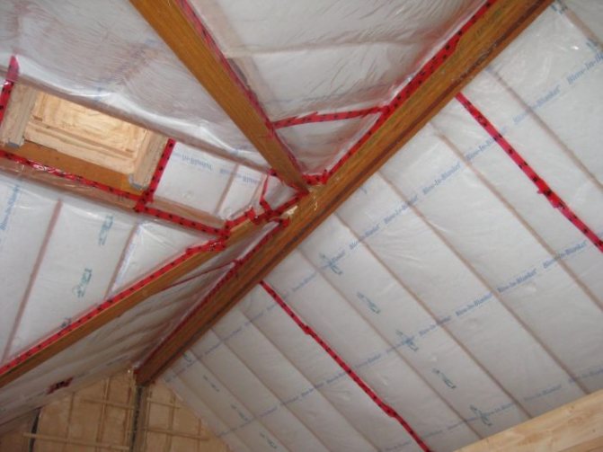 La meilleure option est de poser une couche continue de pare-vapeur, mais en raison de la taille du grenier, cela n'est pas toujours possible, de sorte que tous les joints doivent être collés avec un ruban spécial pour assurer l'étanchéité. Les bords du pare-vapeur doivent être surélevés au-dessus du niveau de la future isolation et collés avec le même ruban.