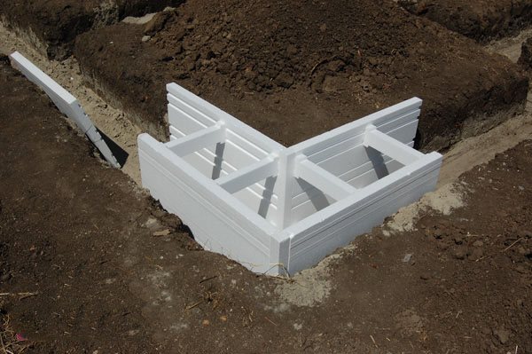 Pour couler la fondation, un élément de formage est nécessaire pour retenir la masse liquide de béton. Pour cela, un coffrage en panneaux de bois est traditionnellement utilisé, qui est amovible. La construction du coffrage prend beaucoup de temps. Il doit être fixé avec de nombreux éléments et après avoir été versé, il est à nouveau démonté. Un coffrage permanent est également utilisé, qui reste dans le sol après le coulage. De nouvelles technologies innovantes ont permis de créer un coffrage permanent, qui est assemblé comme un designer pour enfants. Le plus célèbre de ces dernières années est le coffrage de la fondation en polystyrène expansé, à l'aide duquel tous les processus de création de la fondation sont restés inchangés, à l'exception de la méthode de formation du coffrage lui-même.