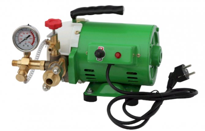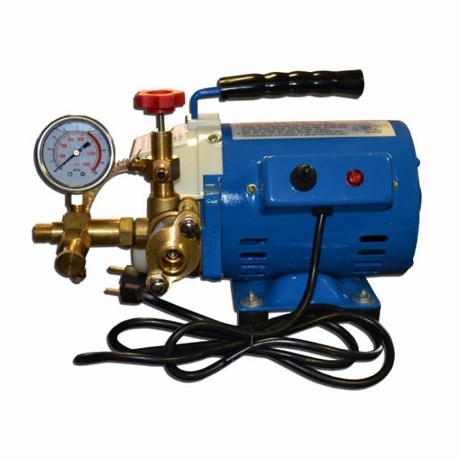 Les pompes électriques pour les tests de pression des systèmes sont des pompes de puissance et augmentent la pression avec du liquide dans le système. Toutes ces pompes sont à aspiration. Pour un grand volume d'essais de pression, il est recommandé d'utiliser uniquement des pompes électriques, et pour un petit volume, des pompes mécaniques peuvent être utilisées.