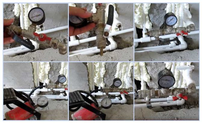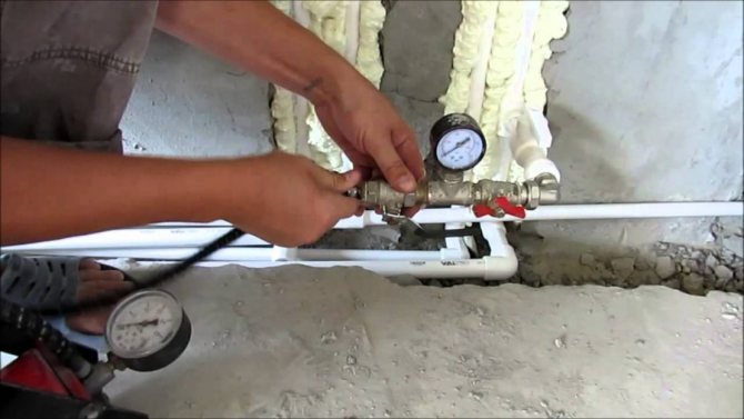 Pour déterminer les dommages, une pression hydraulique est créée dans le système. Son coefficient doit être supérieur à la pression de service maximale possible dans la canalisation. Ainsi, si le système peut supporter une charge hydraulique de 16 atmosphères, les tuyaux peuvent également résister à la pression standard de 8 atmosphères.