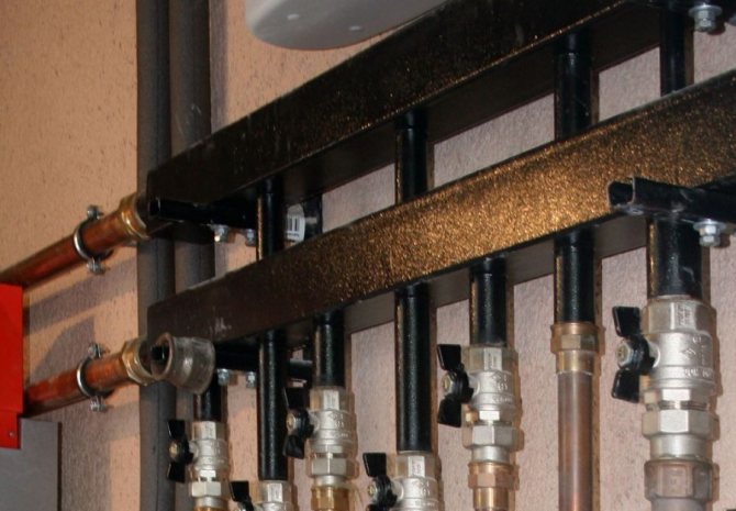 Sur les sections du tuyau qui alimentent en eau chaude le CO et renvoient l'eau froide à la chaudière, des collecteurs spéciaux sont installés, qui sont des peignes, à chaque branche desquels un étranglement est installé. Chacun des radiateurs a deux tuyaux, l'un de l'alimentation et du retour.