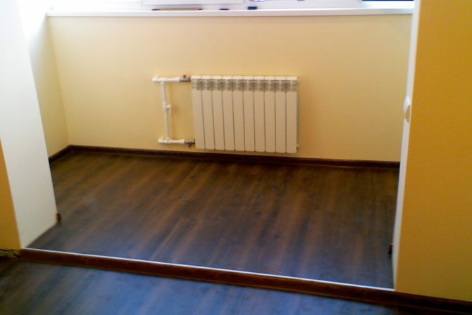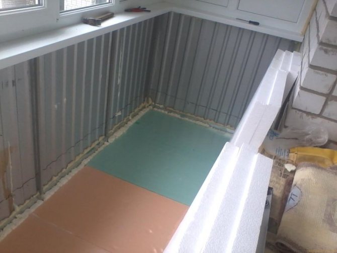 Au-dessus de cette structure, un revêtement rugueux est constitué de panneaux de particules, de contreplaqué.Vous pouvez installer un sol chaud sur une loggia dessus. Ensuite, des travaux de finition sont effectués.
