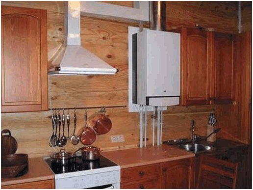 Si la superficie d'une maison en bois est petite, vous pouvez envisager d'installer des convecteurs à gaz. Leur coût est objectif et raisonnable, et l'efficacité du chauffage est élevée. Mais ils sont assez «gloutons» et consomment beaucoup plus de combustible qu'une chaudière.