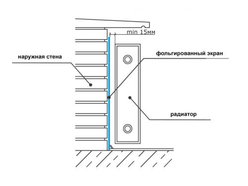 Lors de l'installation du film calorifuge, il est également nécessaire de faire attention à la disposition géométrique des radiateurs par rapport au mur. Pour augmenter la surface utilisable de la pièce, il est conseillé d'installer des radiateurs dans des niches sous les ouvertures de fenêtres. Mais en conséquence, si vous montez un radiateur dans une telle niche, l'épaisseur du mur diminue et cela doit être pris en compte. Dans ce cas, la couche d'isolation thermique augmente. Il est également nécessaire d'examiner la méthode de connexion des radiateurs.