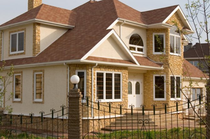 C'est un matériau qui rend l'apparence de la maison plus «noble». Puisque la finition avec de la pierre naturelle est un plaisir coûteux, elle est associée à la richesse. Les panneaux de vinyle imitant la maçonnerie sont moins chers, mais même visuellement, il est parfois difficile de les distinguer de l'original. Et il est plus facile de prendre soin de ces murs - il suffit de les essuyer avec une éponge imbibée de détergent. Les produits imitant la pierre ne perdent pas leurs propriétés dans les plages de température suivantes: de -50 à +50 degrés Celsius.