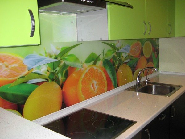 Des panneaux de verre sont également utilisés, et pas seulement dans les cuisines.