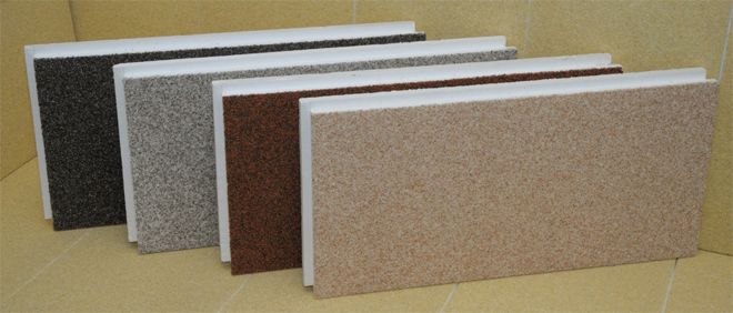 Les panneaux de façade isolés en polystyrène expansé avec plâtre décoratif, y compris des copeaux de marbre de différentes couleurs ou des fractions à grain fin d'autres types de pierre, donnent une surface lisse et sans soudure lors de l'installation.