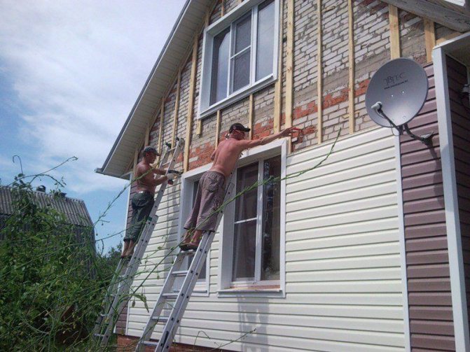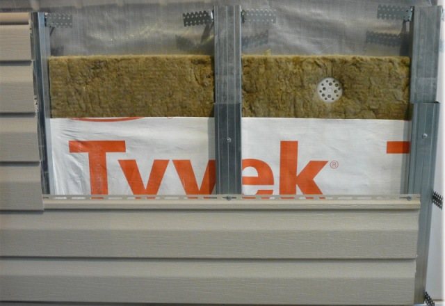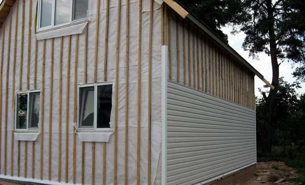 Avant d'installer le revêtement, un film pare-vapeur est fixé sur la façade et une caisse en barres de bois est installée sur le dessus. Avec cette séquence, un espace est formé entre la façade de la maison et le revêtement, qui est rempli d'isolant. Bien que le vinyle soit imperméable, le revêtement de façade n'est pas étanche. L'humidité sera absorbée dans l'isolant, pénétrant entre les panneaux de parement.