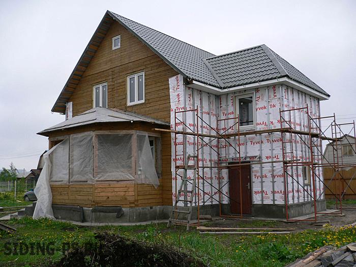 Maintenant, nous recouvrons tout cela de parement et la maison devient chaude et confortable, tandis que sa «graisse sous-cutanée» (isolation) est protégée de manière fiable contre l'humidité des deux côtés.