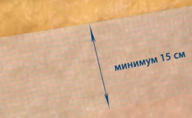 - Lors de la pose du film, les bords doivent être joints avec un chevauchement d'au moins 150 mm, en collant le joint avec du ruban adhésif. Dans ce cas, il est nécessaire de vérifier l'absence de zones non recouvertes d'imperméabilisation afin d'éviter que l'isolant ne se mouille.