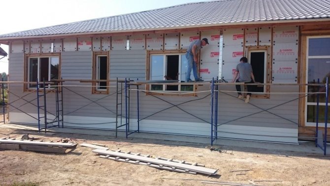 Considérons les étapes du bardage de façade avec bardage en utilisant l'exemple d'une maison en bois et d'une isolation en laine minérale :