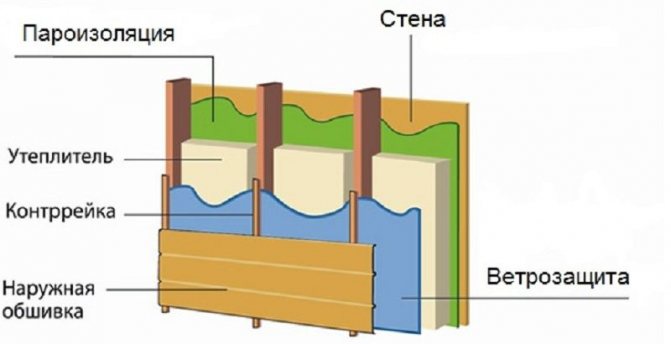 Avec une bonne isolation de la maison avec le bardage, on obtient un gâteau multicouche: bardage, sous celui-ci coupe-vent, sous lui un radiateur, sous lui un pare-vapeur fixé au mur de la maison.