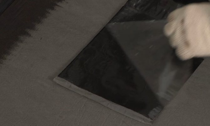 | Appliquer du mastic, à base de bitume, sur le plancher en bois, les murs à une hauteur de 20-25 centimètres. Pour effectuer le travail, utilisez un rouleau ou une brosse (brosse spéciale). Après 4 à 6 heures après l'application de la première couche, appliquez la seconde. Dans ce cas, le rouleau doit être déplacé dans le sens opposé. Lors du séchage de la solution, la poussière et la saleté doivent en être exclues. |