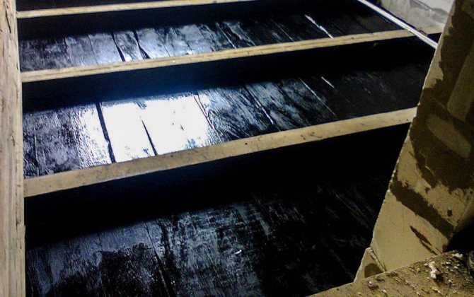 - Caoutchouc-bitume. Fait référence à un composant. Matière élastique. Pas peur des changements de température. Méthode d'application - rouleau ou pinceau. Fournit un bon niveau de protection contre l'humidité lorsqu'il est appliqué à la fois sur des sols en ciment et en bois. L'inconvénient est une odeur désagréable. Utilisation recommandée : travailler uniquement dans des zones bien ventilées.