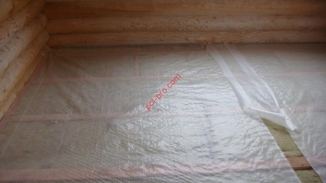 Attention! Si des planches affaissées ou pourries sont trouvées, elles devront être remplacées et les bûches et le sous-plancher doivent être traités avec des moyens spéciaux. Ce n'est qu'après les réparations et l'installation en place que le pare-vapeur peut être posé.