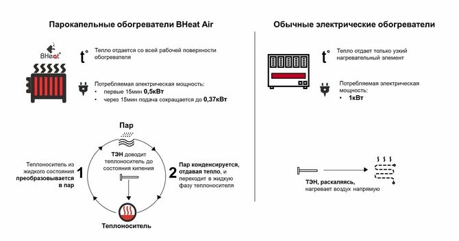 - Un appareil avec un appareil similaire peut fonctionner avec un minimum d'électricité, mais un appareil de chauffage à goutte de vapeur l'utilise dans des volumes beaucoup plus importants.