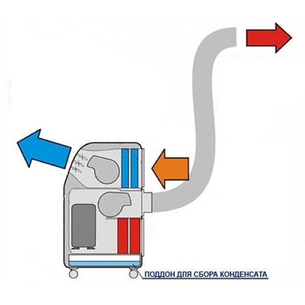 N'oubliez pas que, contrairement aux climatiseurs de fenêtre et aux systèmes split, un climatiseur mobile au sol n'a pas de tuyaux de drainage et l'eau prélevée dans l'air pendant le fonctionnement est accumulée dans un récipient spécial. Certains modèles ont des tuyaux spéciaux pour drainer l'eau dans un puisard ou un bassin pendant le fonctionnement du climatiseur, mais même dans ce cas, une quantité notable d'eau peut rester à l'intérieur. L'eau résiduelle doit être éliminée en inclinant l'appareil vers l'orifice de vidange. De plus, il est fortement conseillé d'allumer le climatiseur pour le stockage hivernal pendant environ une heure en mode ventilation afin de sécher l'échangeur de chaleur.