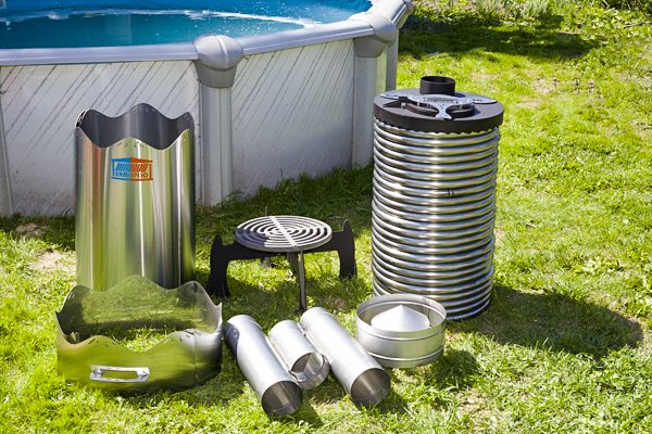 Il reste à déposer du bois de chauffage à l'intérieur de la batterie, à y mettre le feu et à attendre que l'eau de la piscine se réchauffe.
