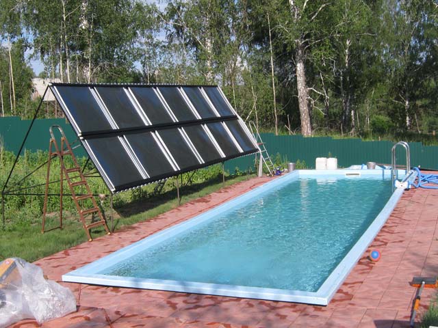 Pas de frais d'électricité, de gaz, de combustible solide. Juste assez de soleil 3 à 5 heures par jour et l'eau de la piscine sera chaude. En même temps, il n'y a aucun dommage à l'environnement. Si un type de chauffage est connecté au système de chauffage solaire, l'eau de la piscine intérieure sera chaude à tout moment de l'année.