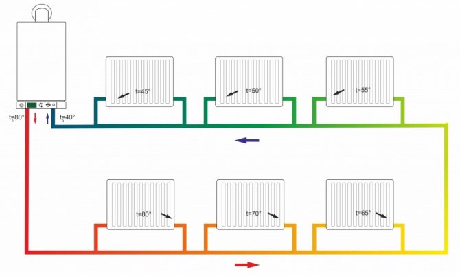 Et bien sûr, la question du contrôle de la température dans les radiateurs individuels, et la possibilité de l'ajuster. Un système de chauffage gravitationnel de forme classique avec un schéma de construction à un tuyau ne peut pas assurer une telle fonction en raison de l'impossibilité de fermer un radiateur séparé.